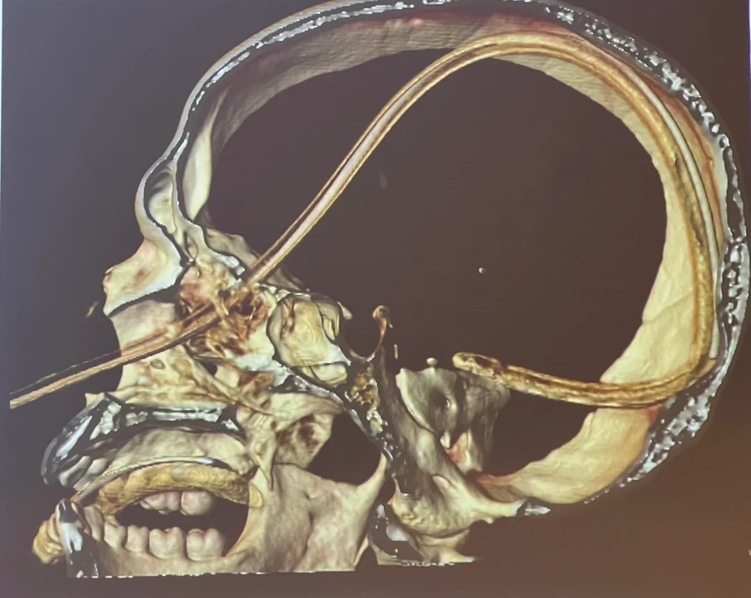 - The person having the NG tube having a fracture in the base of their skull, and the tube ending up inside the cranial cavity.